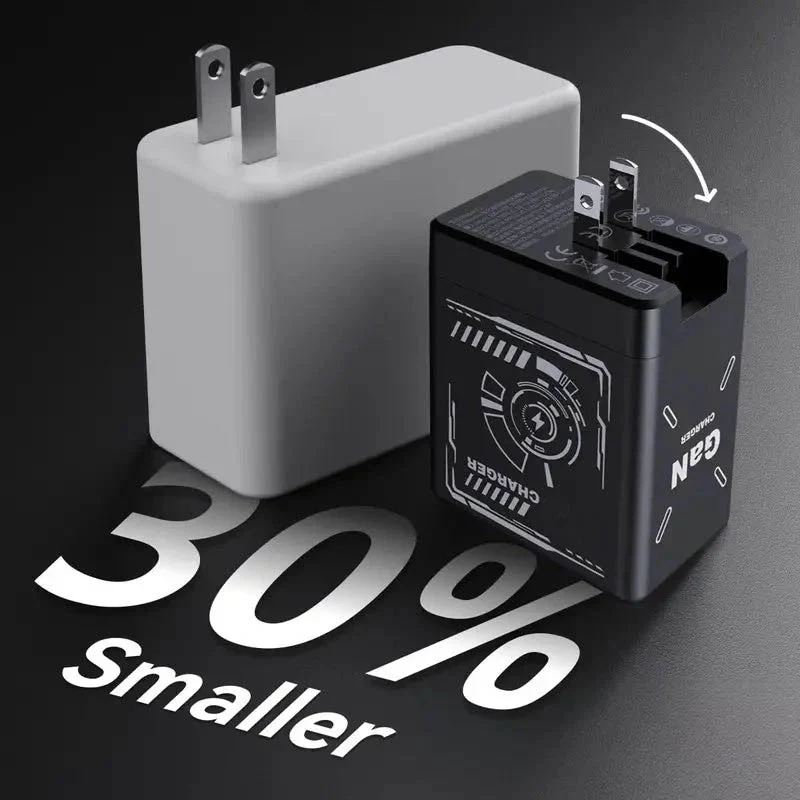 Gallium Nitride circuitry delivers 92 % efficiency for cooler, faster charging in a palm-size shell.